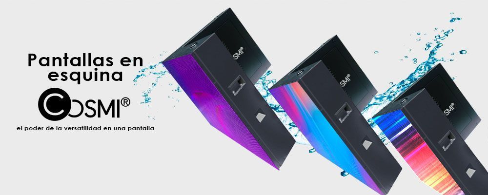 Con las pantallas led de esquina Cosmi se evitan estas distancias, reduciendo la separación entre módulos al mínimo posible, y por consiguiente supone que el contenido visual resulte óptimo en su totalidad.