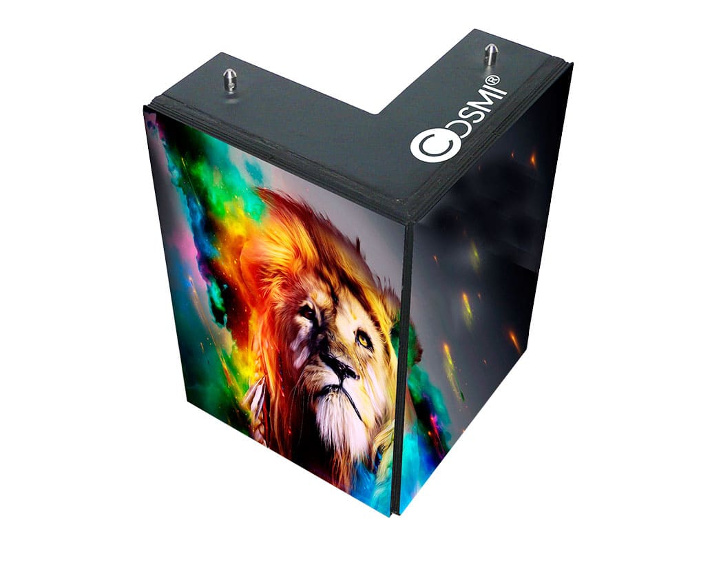 Las pantallas en esquina aportan gran versatilidad a la hora de componer una pantalla en lugares donde la instalación necesita de una esquina. Esta pantalla garantiza una unión en ángulo perfecta.